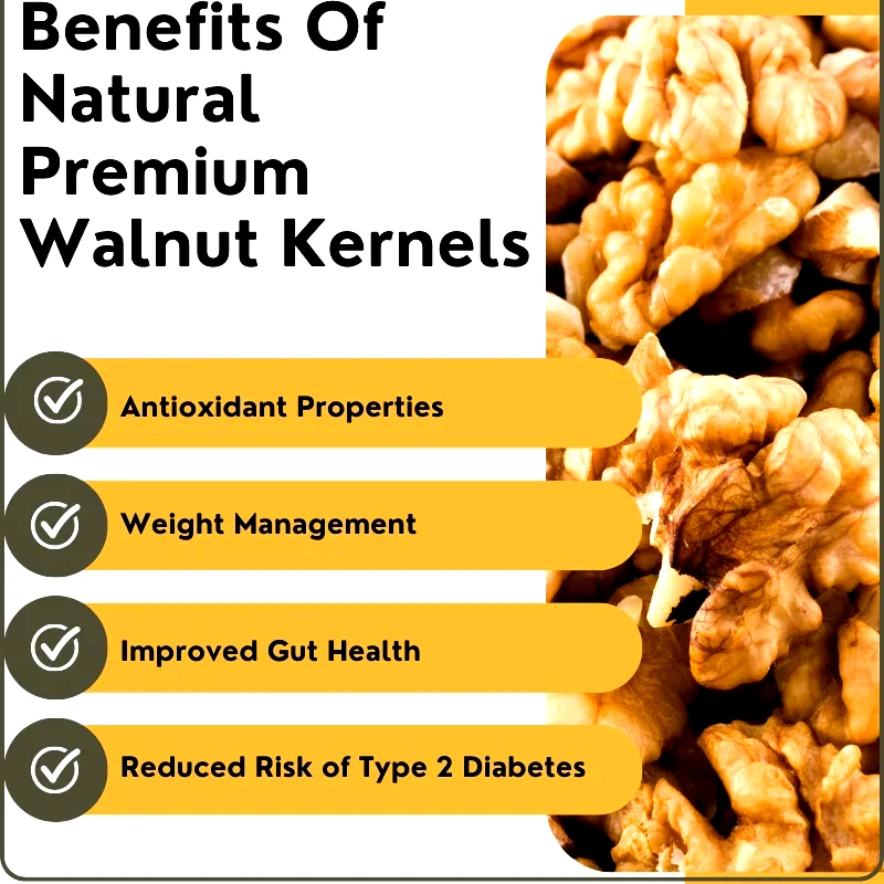 2. Brain Function: The omega-3 fatty acids and antioxidants in walnut kernels are known to support brain health. Regular consumption of walnuts may improve cognitive function, memory, and overall brain health, especially as we age.