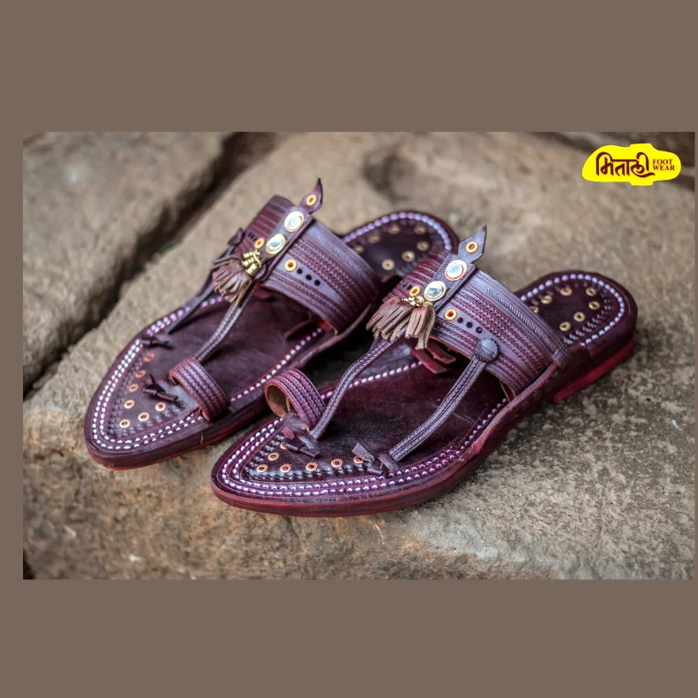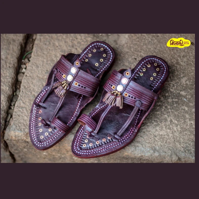 The Pointed 3-Layer Sankeshwari Kolhapuri features a sleek pointed front, crafted from premium leather. Its triple sole layering ensures extra durability and comfort. Handcrafted by skilled artisans, this traditional design blends heritage with modern flair, ideal for everyday wear or special occasions. A true symbol of authentic Kolhapuri craftsmanship.