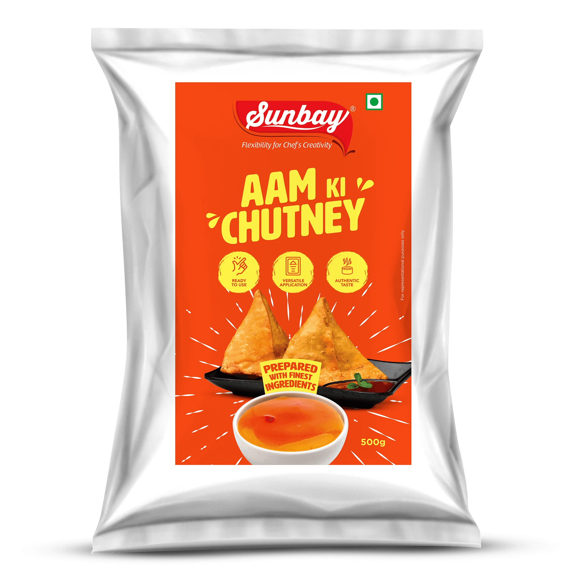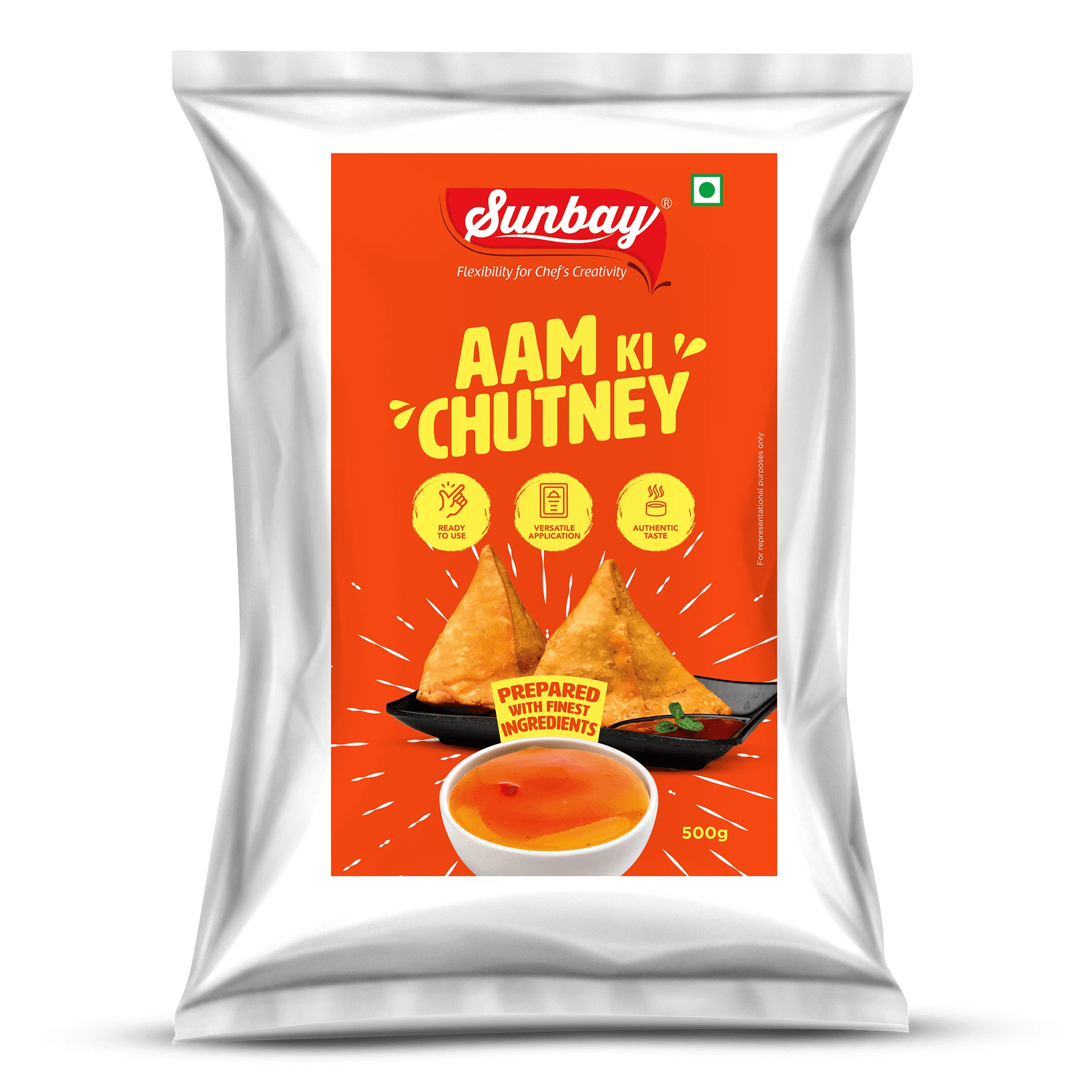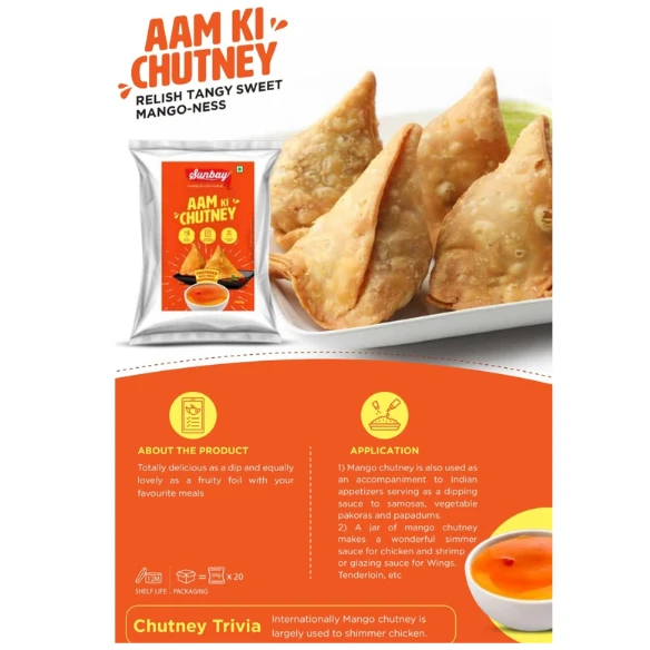 • An accompaniment to Indian appetizers serving as a dipping sauce to samosas, vegetable pakoras and papadums
