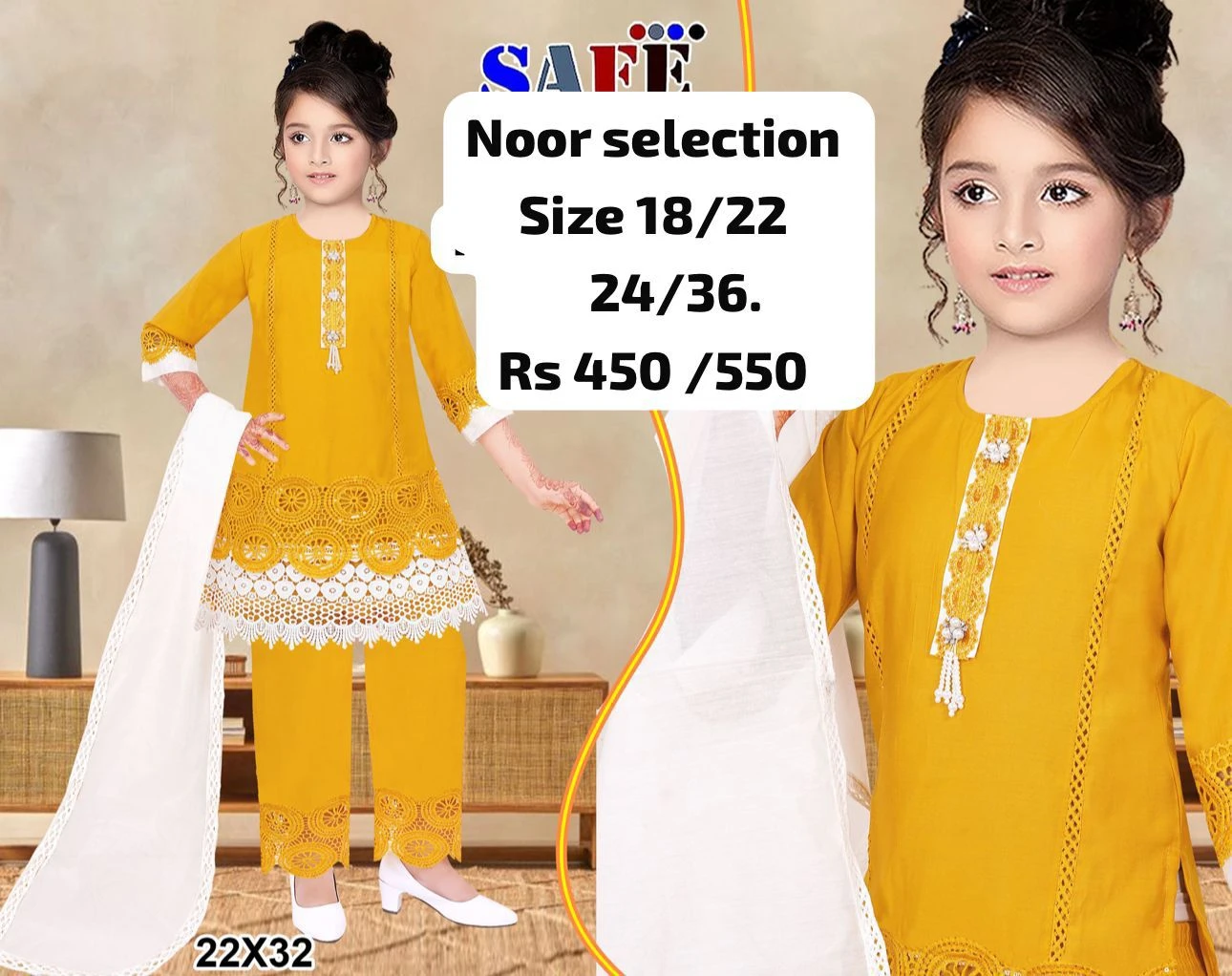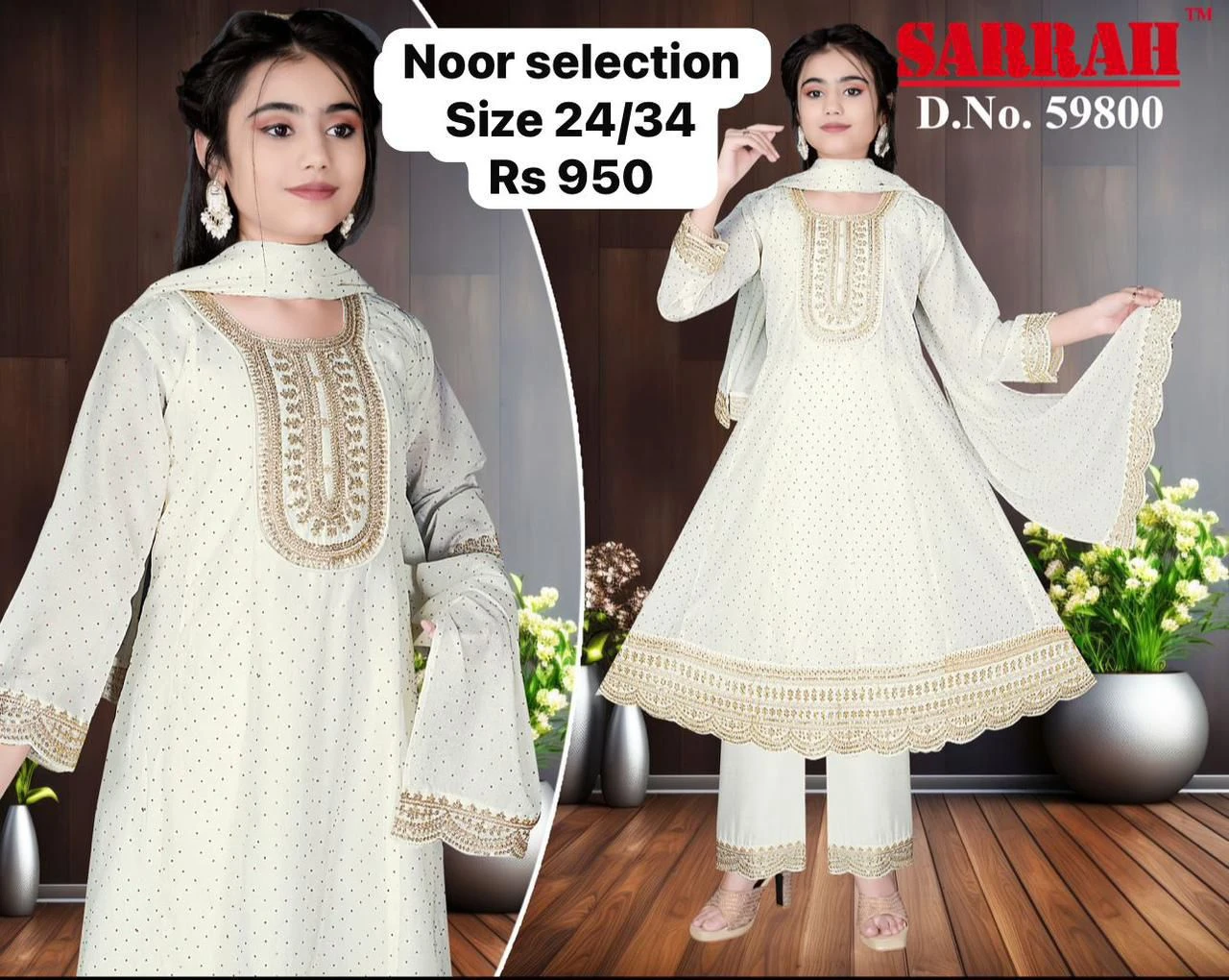 Elegant Noor Selection Anarkali Suit Set designed for comfort and festive charm. Crafted in a soft, flowy fabric with a delicate polka-dot textured base, this outfit features beautiful gold embroidery on the neckline, sleeves, and hemline, giving it a graceful traditional look.