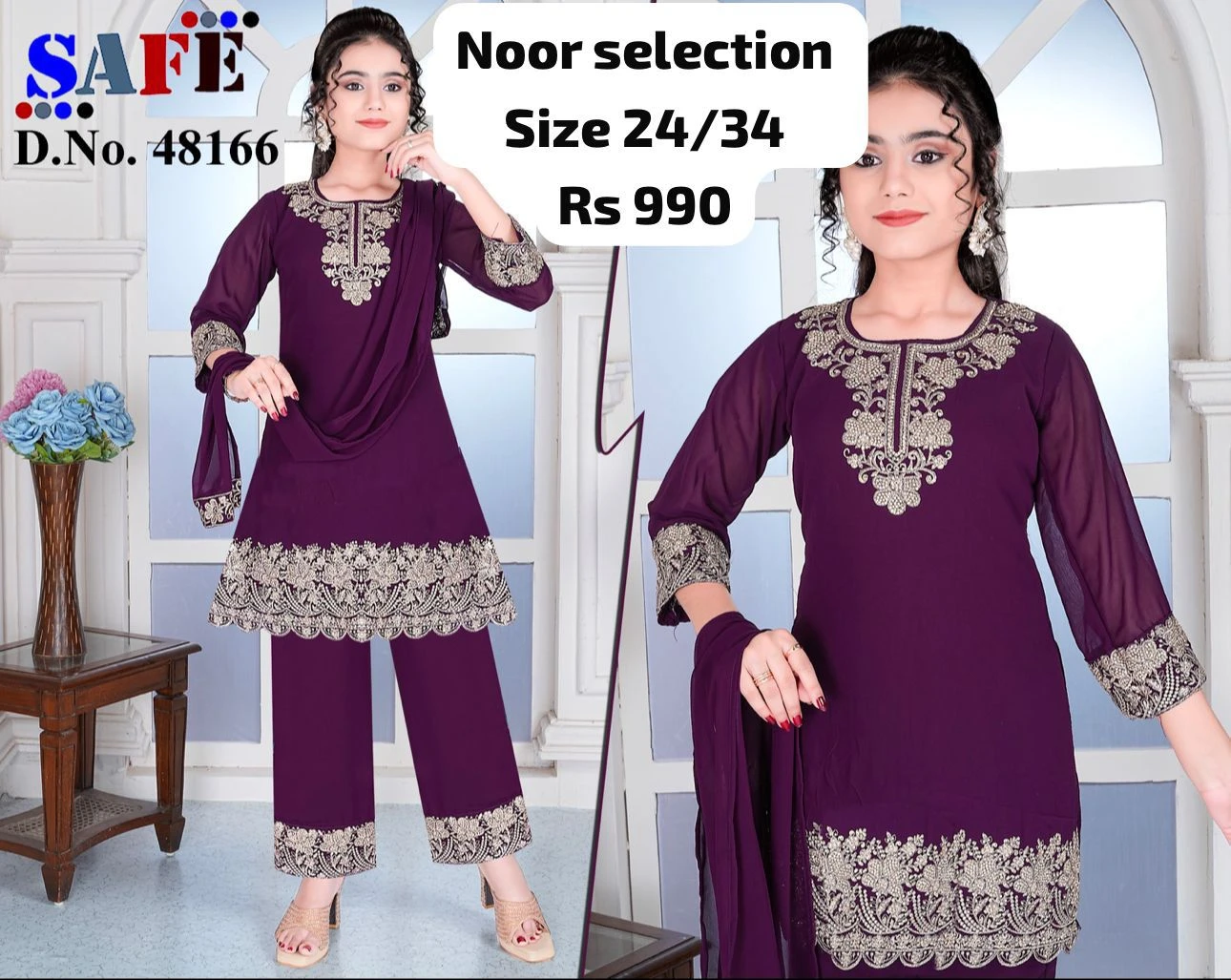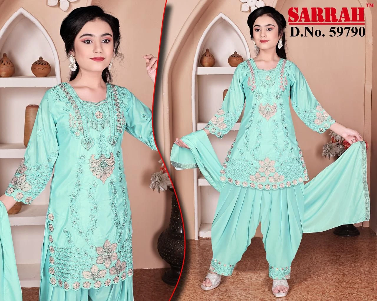 The flared Anarkali kurta is paired with matching straight pants and a coordinated dupatta, making it perfect for festive occasions, family functions, and celebrations.