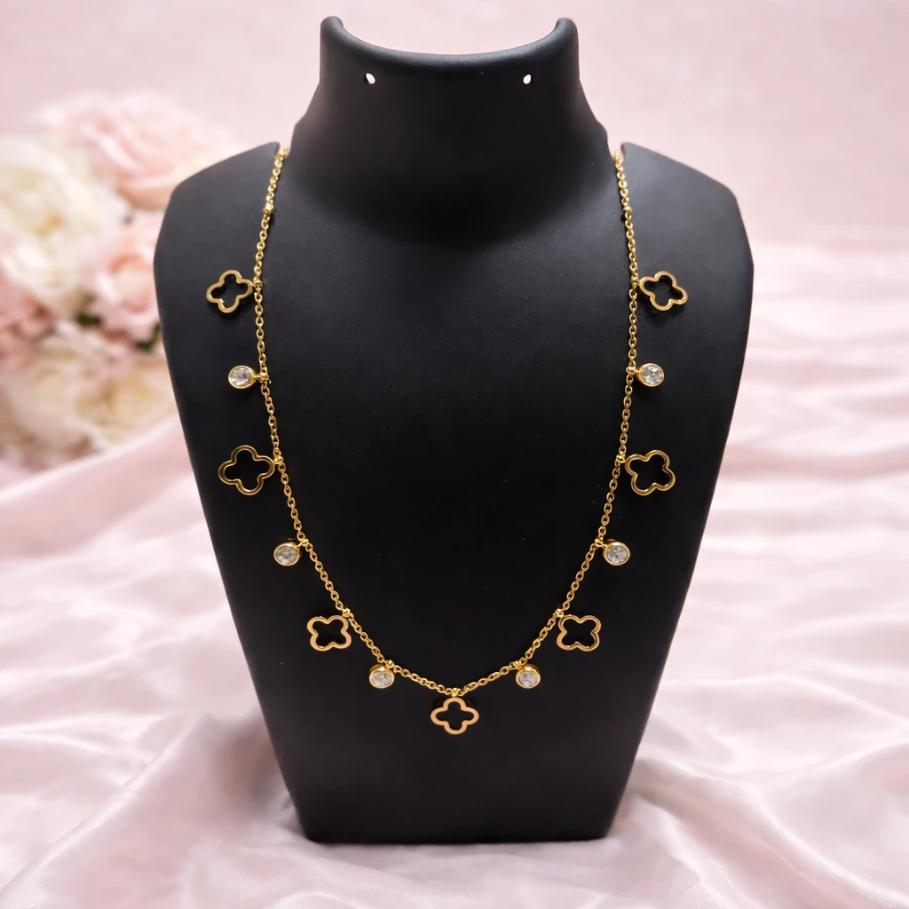 Elevate your everyday style with the 3petals Anti-Tarnish Clover Charm Necklace, designed for women who love minimal yet luxurious jewellery. Crafted with a premium gold-tone finish, this necklace features elegant clover motifs and subtle stone detailing that adds a graceful sparkle.