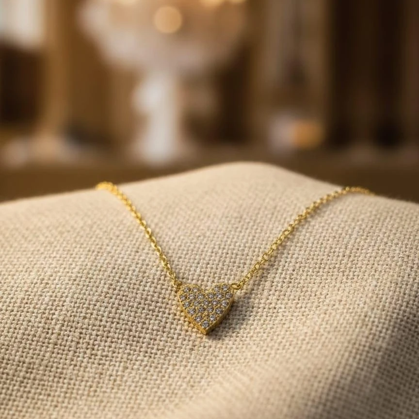 Add a touch of love and elegance to your jewelry collection with this Beautiful Heart-Shaped Gold Necklace. Designed with a finely crafted heart pendant studded with sparkling CZ stones, this necklace gives a soft and classy shine that enhances your everyday look.