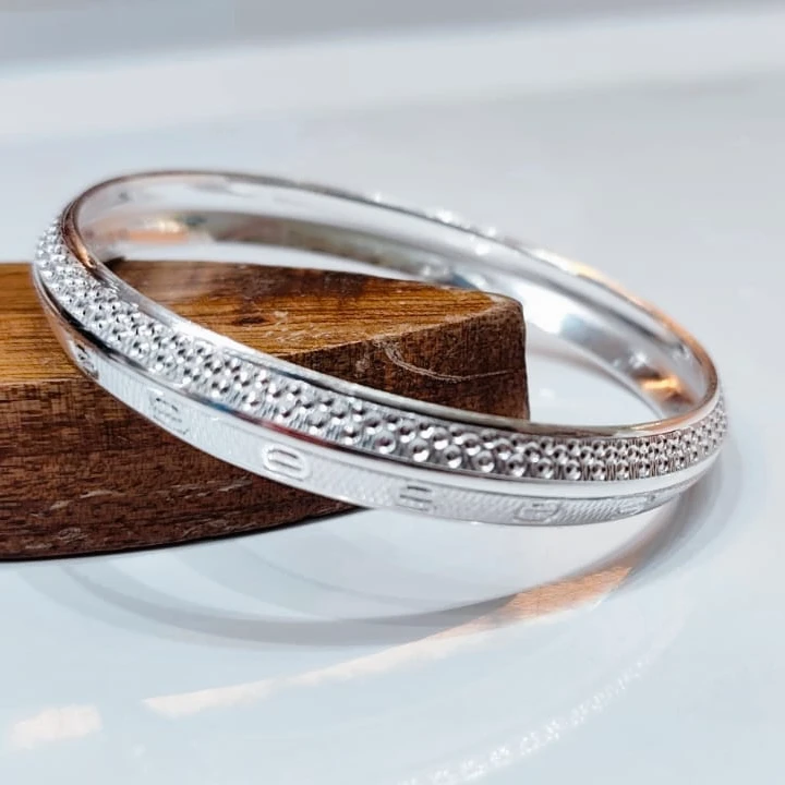 Add timeless elegance to your jewelry collection with this beautifully crafted 925 sterling silver kada. Designed with a sleek polished finish and subtle textured detailing, this kada offers a perfect balance of simplicity and sophistication.