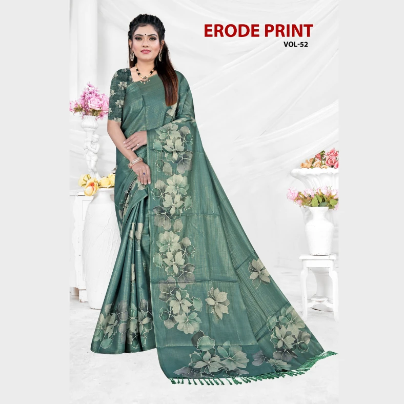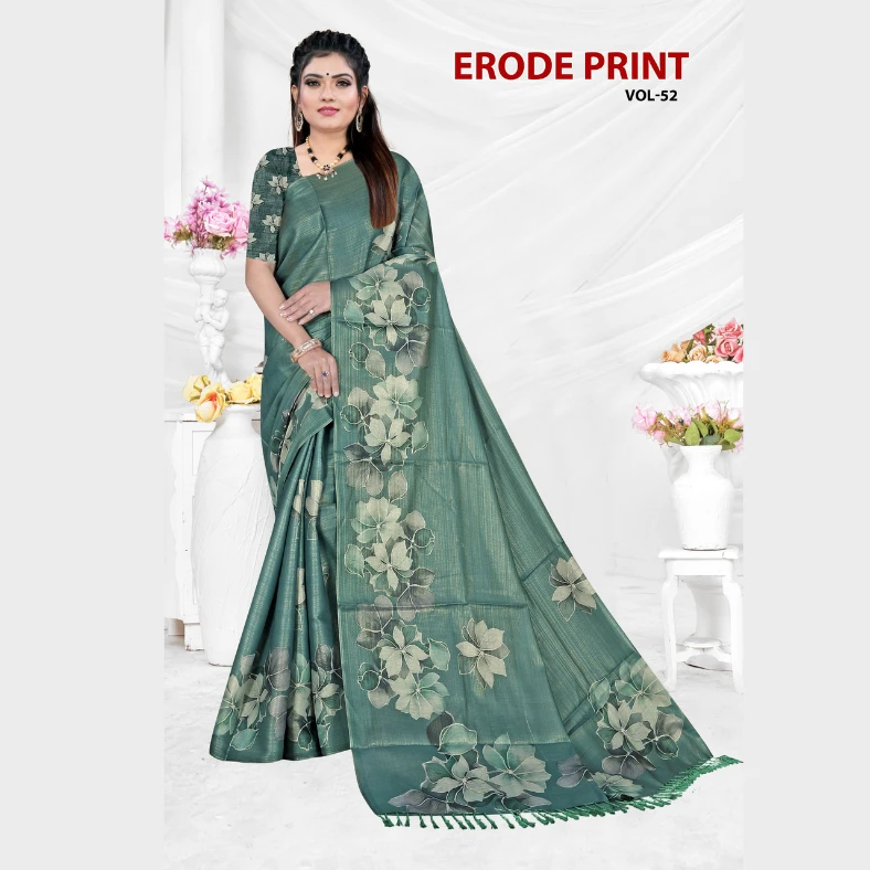 Elevate your ethnic style with this stunning purple floral printed saree from the Erode Print collection, crafted in a smooth and comfortable silk blend fabric. The rich purple hue adds a royal touch, while the delicate floral motifs enhance its feminine charm.