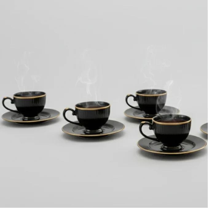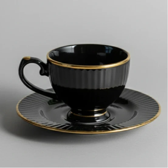 Clay Craft Julie Impression Cup & Saucer, Set of 12 (6 Cups + 6 Saucers), 170 ml, (Black)