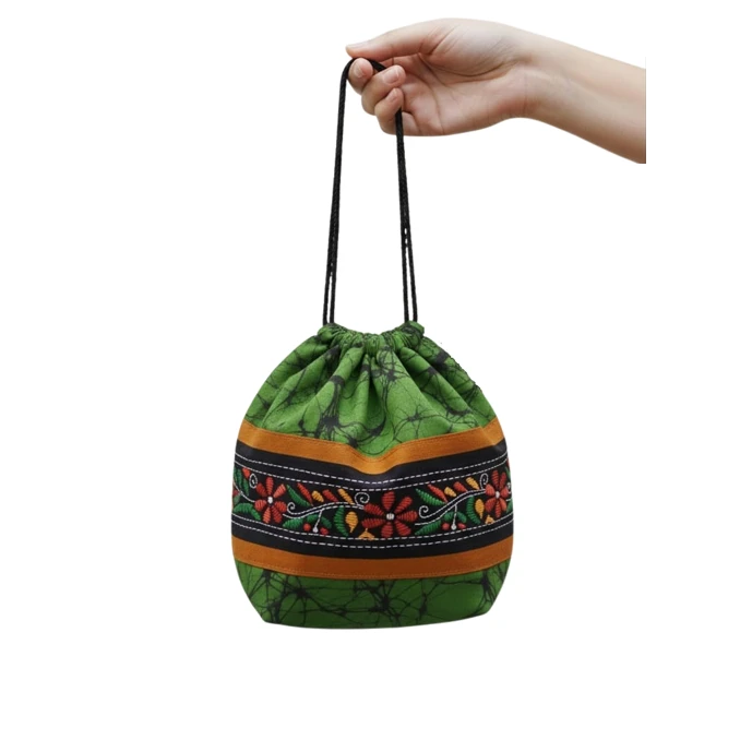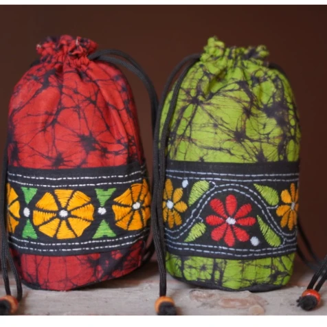 • The  Potli Bag is a combination of both Batik Print and Kantha Stitch design.