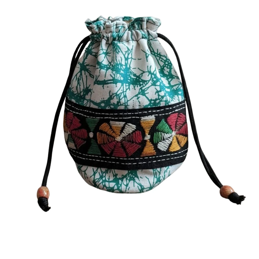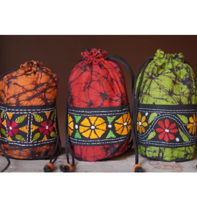• The  Potli Bag is a combination of both Batik Print and Kantha Stitch design.