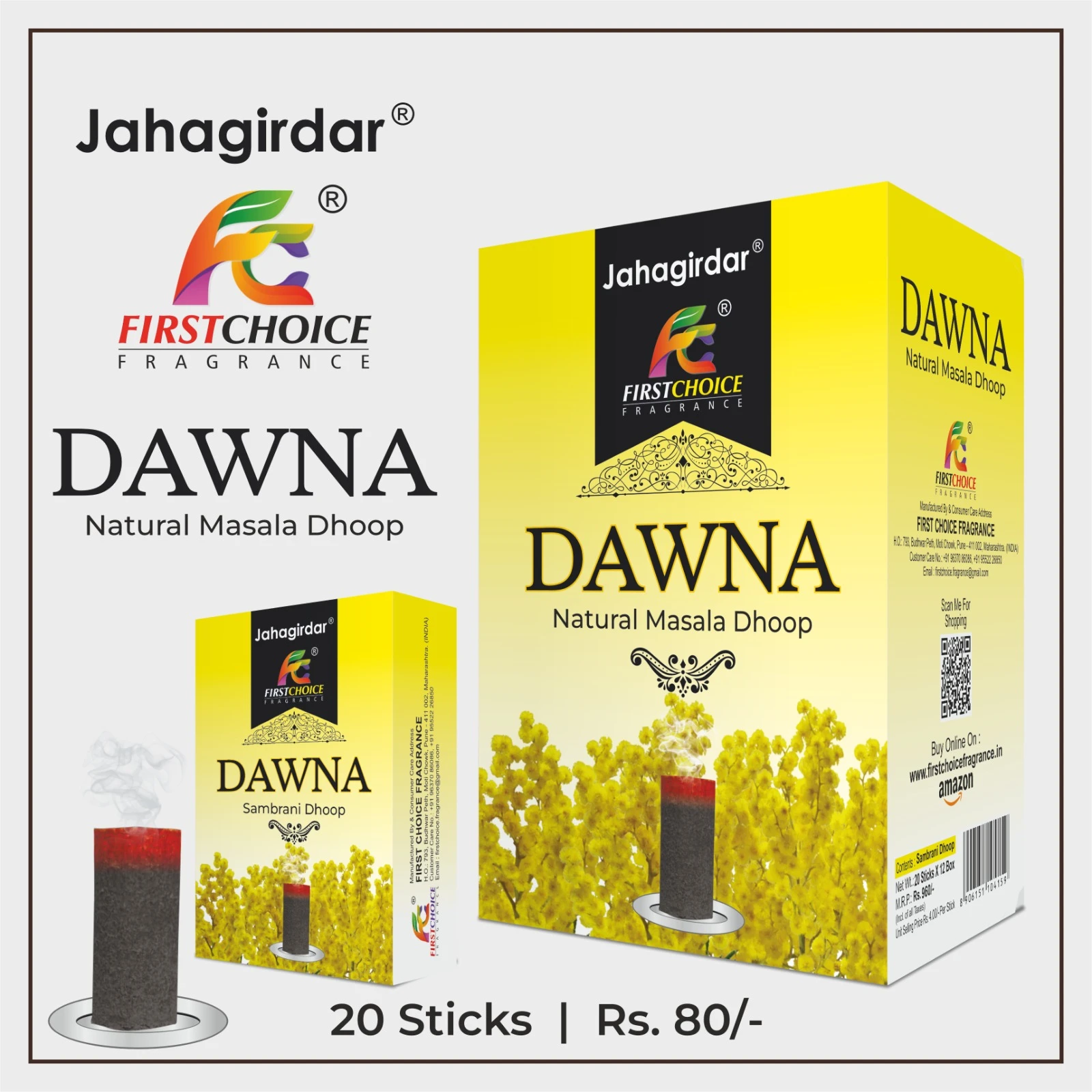 Experience the refreshing and spiritually uplifting aroma of Dawna Natural Masala Dhoop from Jahagirdar Company. Made with premium natural masala ingredients, this dhoop releases a distinctive, herbal fragrance that purifies the surroundings and creates a calm, positive atmosphere.