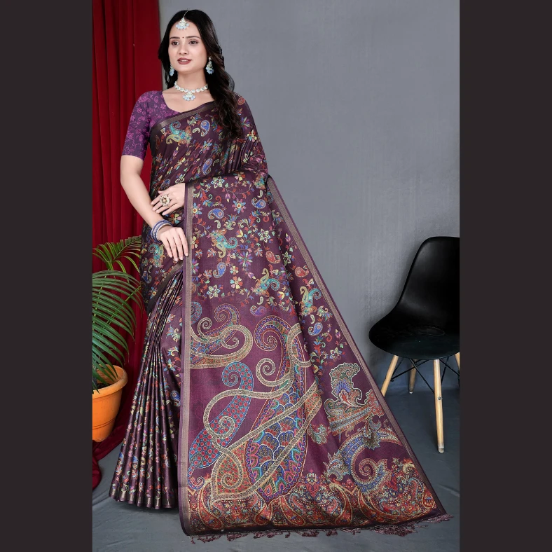 Elevate your ethnic wardrobe with this beautiful patterned crepe silk saree designed for modern elegance. Crafted from smooth and lightweight crepe silk fabric, this saree offers a soft texture and graceful drape that enhances your overall look. The stylish printed pattern adds a contemporary touch, making it perfect for festive occasions, parties, family gatherings, and traditional events.