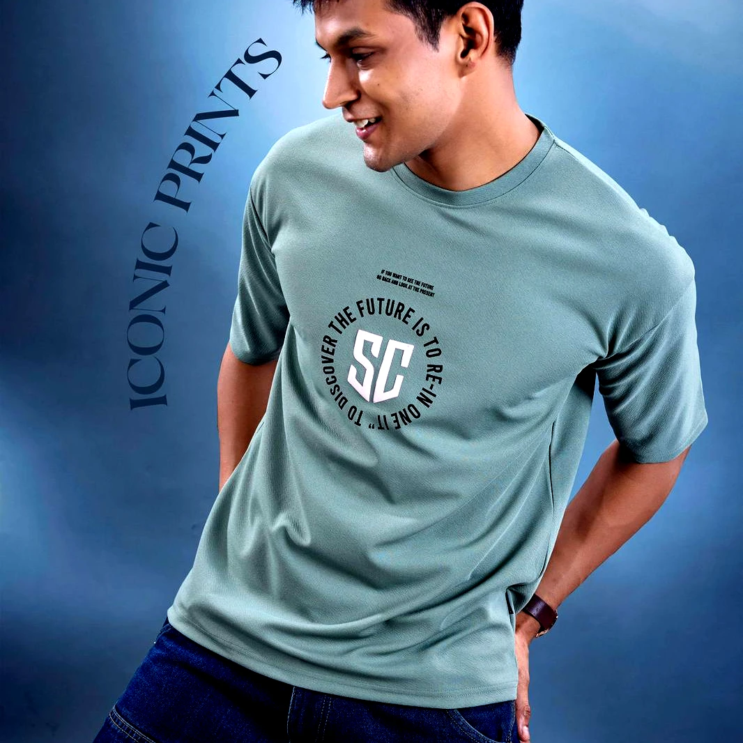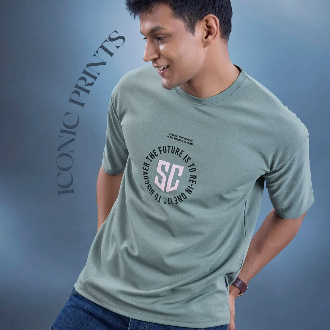 Upgrade your casual wardrobe with this premium sage green round-neck T-shirt from Teric Fit. Designed for modern men who prefer comfort with style, this T-shirt features a minimal yet trendy front graphic print with a bold “SC” emblem and motivational circular typography, giving it a contemporary urban look.