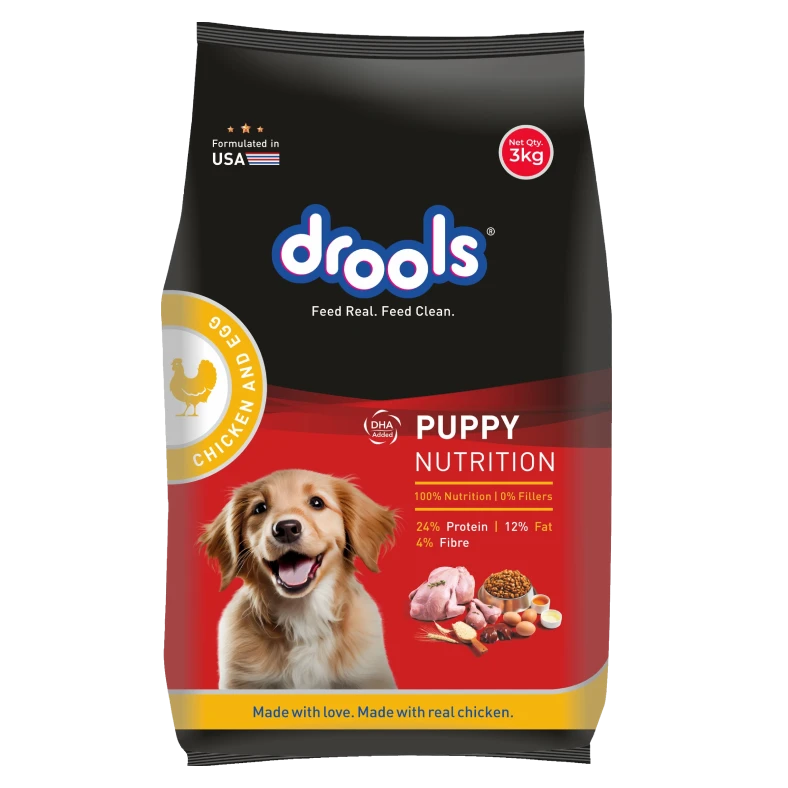Drools Chicken and Egg Puppy Food offers the right amount of vitamins and minerals for your pups to enhance their growth and development. We use real chicken with no by-products which is our No 1. ingredient. Our recipes are built to boost digestion and strengthen the immune system to keep them active and healthy all day. Our raw materials go through stringent processes to ensure the quality and safety of the food.