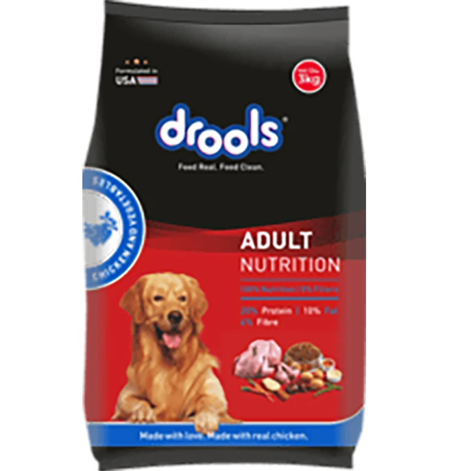 Drools Chicken and Vegetables Adult Dog Food is specially formulated with the right balance of protein and essential nutrients to help your dog maintain lean muscle and overall health during their adult years. Made with real chicken and vegetables, and no by-products, you can trust that you’re giving your pet wholesome nutrition. As dogs enter adulthood, they require a balanced, nutrient-rich diet to sustain energy levels, support immunity, and promote long-term health. This recipe helps build strong bones, healthy muscles and teeth, and supports both immunity and digestion—keeping your dog active and happy through every stage of life.