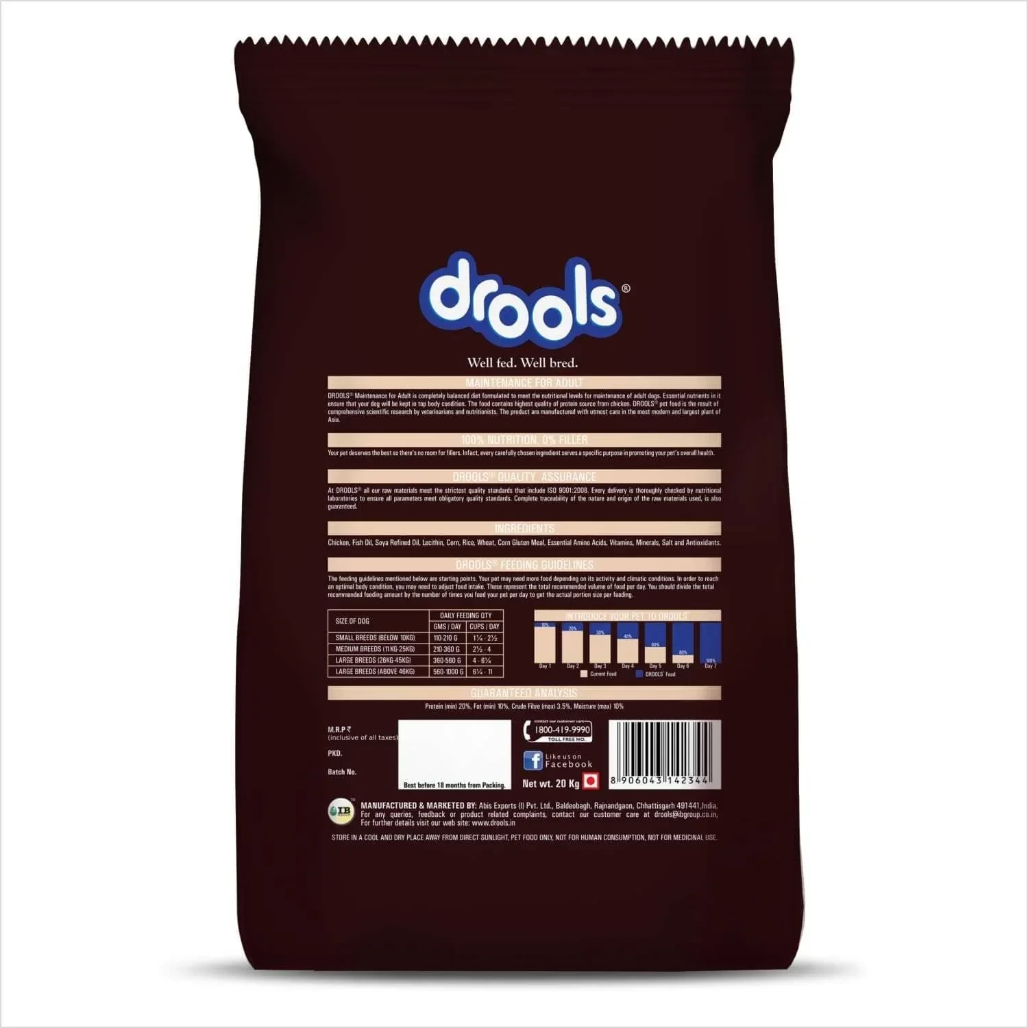 Drools Maintenance Dog Food is a complete and balanced daily nutrition formula designed for adult dogs with normal activity levels. It supports overall health and well-being by providing essential nutrients required for day-to-day maintenance rather than high-energy performance or growth.