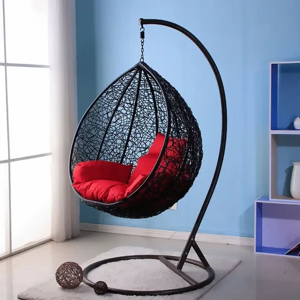 Hanging swing chair with stand for garden patio balcony outdoor indoor black