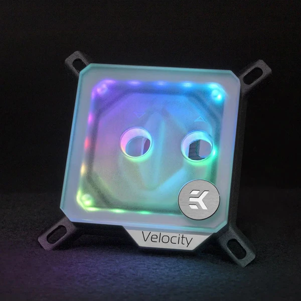 EK-Quantum Velocity D-RGB - Nickel + Frosted Plexi is the new high-performance premium quality CPU water block for modern Intel consumer and HEDT processors. It features a unique frosted acrylic top which diffuses the 20 addressable LEDs and visually aligns with frosted/satin tubing. The water blocks lighting solution connects to a standard 3-pin 5V D-RGB header.