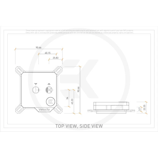 | Package Contents | - EK-Quantum Velocity CPU water block - PreciseMount universal CPU mounting mechanism - EK-Velocity Backplate - 2.5mm Allen key - Jet J2 (0.8mm* thick) - Thermal grease Thermal Grizzly Hydronaut (1g) |