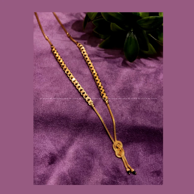 Add a touch of elegance to your jewellery collection with this beautifully crafted 12 gram gold-finish designer chain. Featuring a stylish textured link pattern with a modern adjustable tassel drop design, this chain is perfect for daily wear as well as festive occasions.