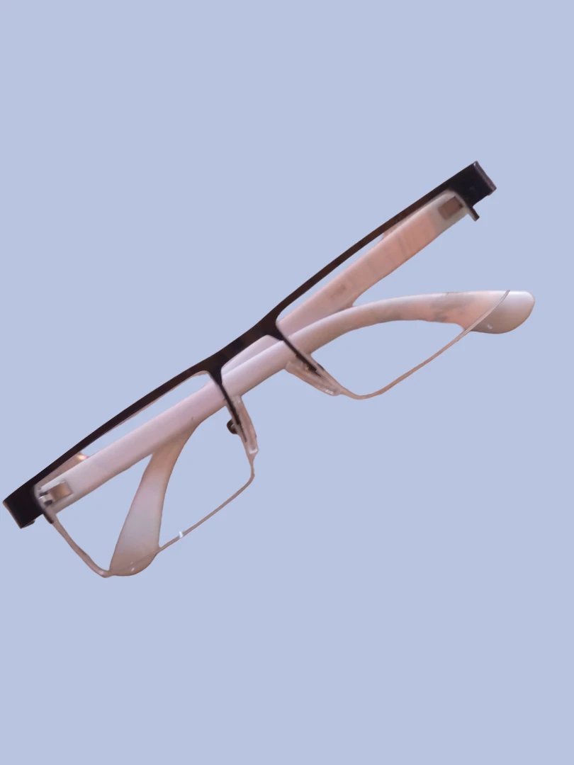 Modern half-rim eyeglass frame designed for a clean and minimal look. The frame features a sleek black upper rim paired with transparent lenses and white curved temples, giving it a stylish yet professional appearance. Lightweight construction ensures comfort for long hours of wear.