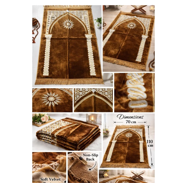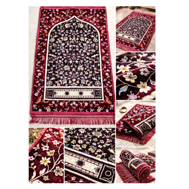 Enhance your prayer experience with this beautifully designed velvet Janamaz, crafted for comfort, elegance, and durability. The mat features an intricate floral pattern with a traditional arch design, giving it a rich and spiritual look. Its soft velvet surface provides a smooth and comfortable feel for daily prayers, while the detailed borders and tassel edges add a premium touch.