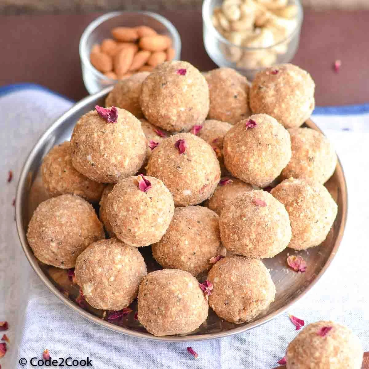 Wholesome wheat ladoos made with pure ghee, jaggery, and dry fruits for a rich, comforting taste