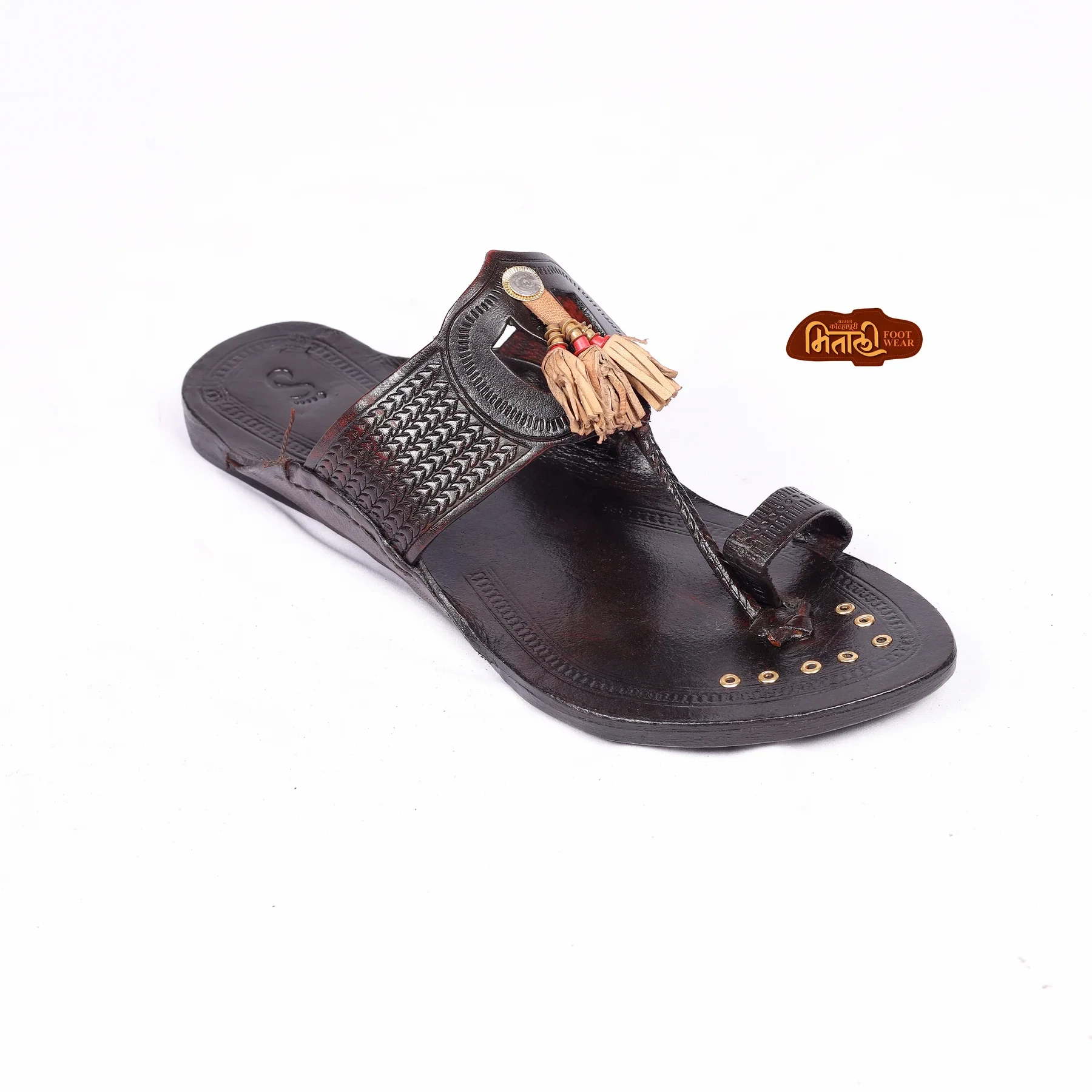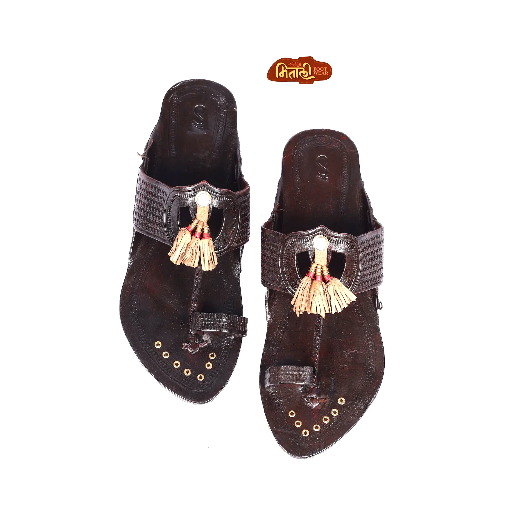 Crafted from premium quality leather, the upper showcases the signature Gonda Dharmapan pattern with fine cutwork and textured straps that provide both style and durability. The cushioned insole ensures all-day comfort, while the strong sole offers excellent grip and long-lasting wear.
