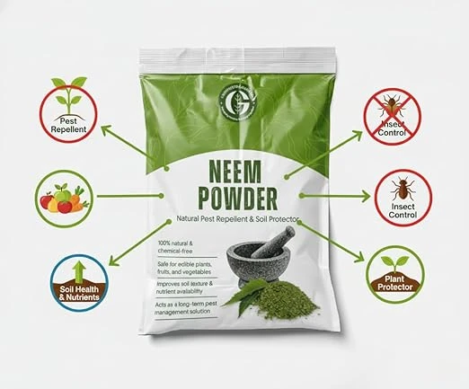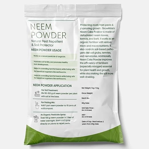 GrowMitra Organic Neem Cake Powder is a natural, eco-friendly plant care solution made from pure neem seed residue after oil extraction. It acts as both an organic fertilizer and a natural pest repellent. Rich in essential nutrients like nitrogen and organic matter, it improves soil fertility, enhances beneficial microbial activity, and helps protect plants from soil-borne pests and diseases. Ideal for all indoor & outdoor plants, kitchen gardens, terrace gardens, flowering plants, vegetables, fruit plants, and lawns. 100% chemical-free and safe for plants, soil, and the environment, making it perfect for sustainable gardening and organic farming.