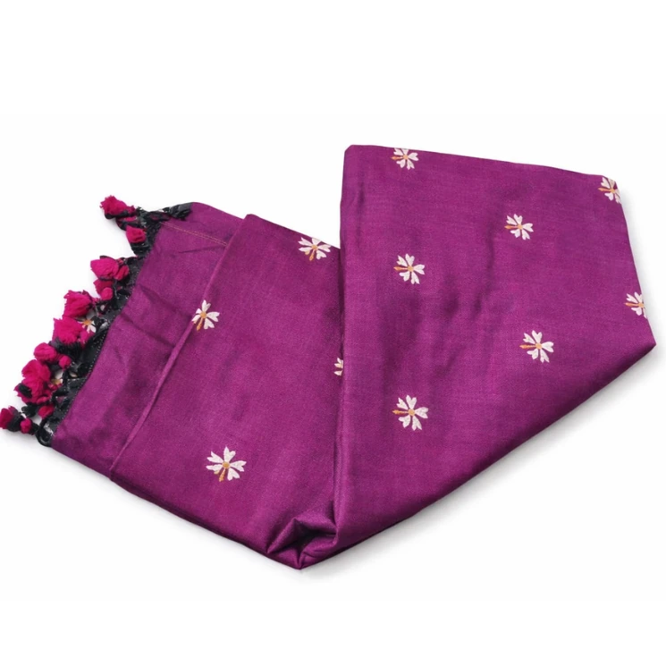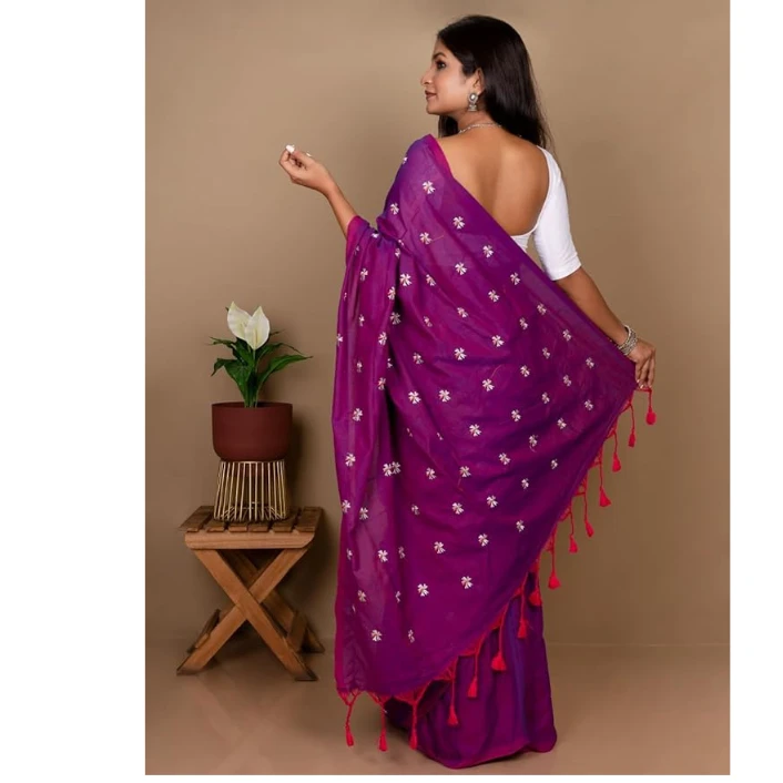 • Saree Details: Color- Purple, Material- Khadi Cotton, Length- 5.5m, Work Type- Floral Woven Work