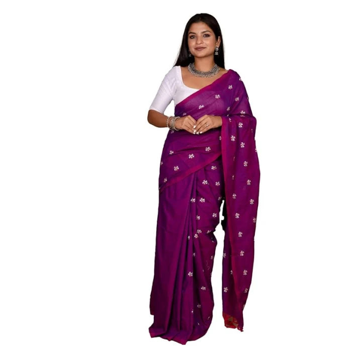 Women's Floral Embroidered Handloom Pure Cotton Saree