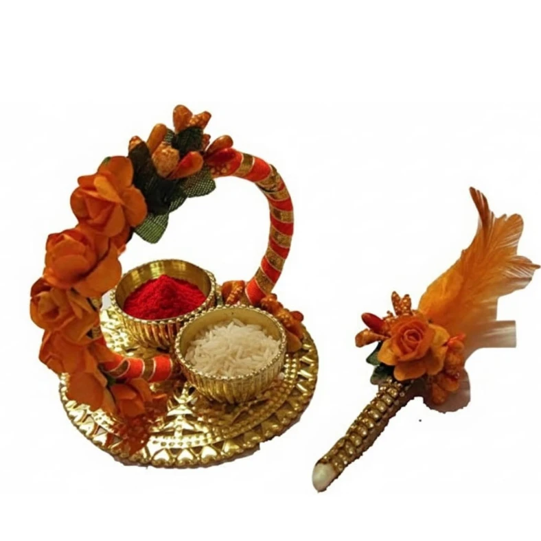• Package Contains 1 Haldi Kumkum Pooja thali and 1 Tilak Stick .