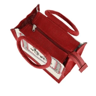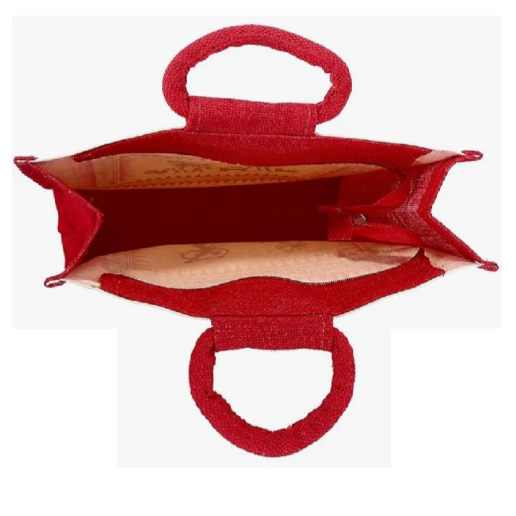 Handcrafted Eco Friendly Reusable Red Jute Bag With Dancing Figures