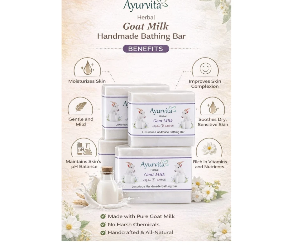 Experience gentle and nourishing skincare with our Goat Milk Soap, enriched with the natural goodness of fresh goat milk. Known for its moisturizing and skin-soothing properties, goat milk helps maintain the skin’s natural pH balance while deeply cleansing without dryness. This soap is rich in vitamins and minerals that leave your skin soft, smooth, and healthy-looking. Suitable for daily use and all skin types, especially dry and sensitive skin.