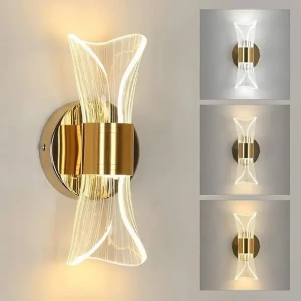 PRODUCT COLOR Gold Bulb Type It Comes with Led Type of Light (No Separate Bulb Required), 3 Color in one (WamWhite/Natural White/White) Which can be easily toggled with the Switch On and Off Motion PRODUCT MATERIAL TYPE Product Consist of Acrylic and Metal Stylish Design?: This wall light features a stunning Curvy Style design, adding a touch of elegance and modernity to any living room or bedroom decor. APPLICATION?:Decorative Led Lamp for Wall, Led Wall Light, Led Wall Lamp, Led Wall Scone to décor your Home, Bedroom, Drying Room, Living room, Staircase, Balcony, Kitchen, Study Table, Office, Restaurant, Hotel, Shop, Cafe, Dinning, Coffee Shop and All types of Wall. Versatile Lighting?:Suitable for use as a wall lamp in the living room, bedroom, or as a bedside lamp, providing warm and inviting illumination. Durable Construction. Crafted from high-quality metal, this wall light ensures long-lasting durability and reliable performance. INSTALLATION GUIDE?:Our Suggestion to call Professional to install any electrical equipment.