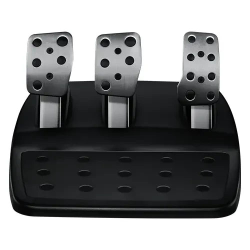 RESPONSIVE FLOOR PEDAL UNITAdjustable for maximum controlMaintain a more realistic driving body position with the separate floor pedal unit with integrated throttle, brake, and clutch pedals. G29 Driving Force lets you comfortably accelerate, brake and change gears with the feel of an actual car.The nonlinear brake pedal mimics the performance of a pressure-sensitive brake system for a more responsive, accurate braking feel. For even finer control, reposition the pedal faces to make heel-toe maneuvers easier to perform. Rubber feet for hard surfaces and a patented retractable carpet grip system help your pedals stay right where you put them. | |