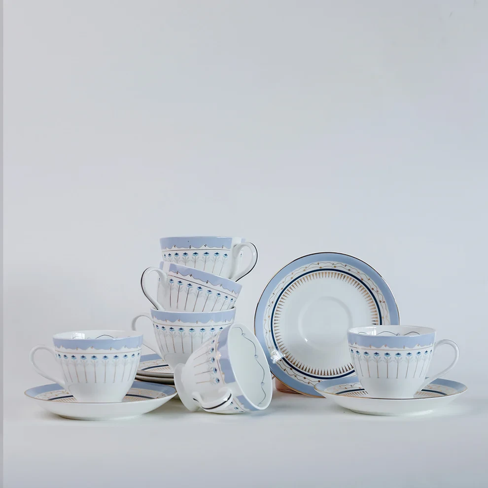 Magique by The Wishing Chair x Clay Craft, River of Flowers King Cup & Saucer, Set of 12, 180ml, (6 Cups + 6 Saucers)