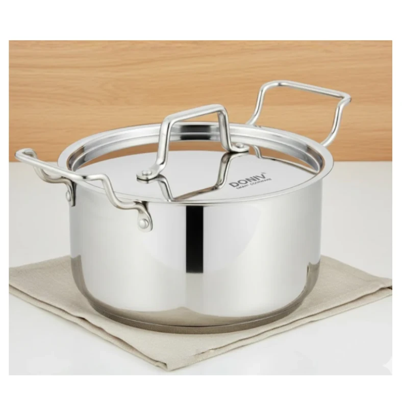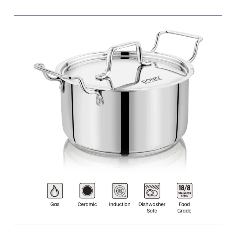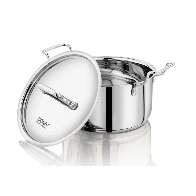 • Stainless steel Sandwich Bottom Sauce Pot for safe and versatile cooking. Made using high-quality food-grade stainless steel that is sturdy and durable. Sandwich Bottom helps in uniform heating and prevents burnt food