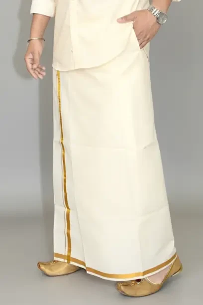 Adjustable Welcro Cotton Pocket Dhoti Traditional Dhoti for Men GOLD Jari Border Dhoti Product Description: Enhance your traditional wardrobe with our Men's Adjustable Welcro Cotton Dhoti. This elegant dhoti, featuring a stylish Gold Jari border, is perfect for weddings, religious ceremonies, and other formal occasions. it combines simple and sophistication, ensuring you stand out. Key Features: • Adjustable Fit: Special adjustable Welcro fit for hip sizes 28 to 44 inches, ensuring a customizable and sampleable fit. Easy to Use: Features an easy stick and unstick Welcro attachment, making it simple to adjust based on simple. • Elegant Design: Single dhoti (Ottiko Kattiko) with a traditional and refined look. • High-Quality Material: providing maximum simple and ensuring the fabric is not transparent. Durable Fabric: Ensures long-lasting use and maintains its pristine look. • Practical Pocket: Includes a convenient left-side pocket for carrying your cell phone and wallet. Simple and Style: Combines simple and elegance, making it suitable for various formal occasions. Traditional Wear: Perfect for weddings, religious ceremonies, and traditional events. • Easy Care: Hand or gentle machine wash recommended. Do not add blue; wash with similar colors to maintain fabric quality and color integrity.