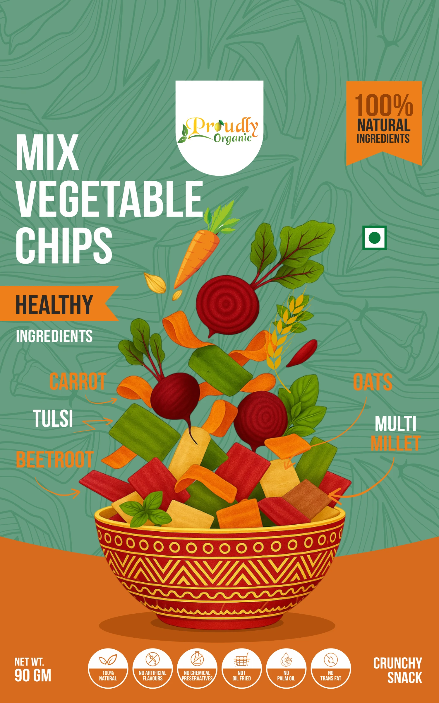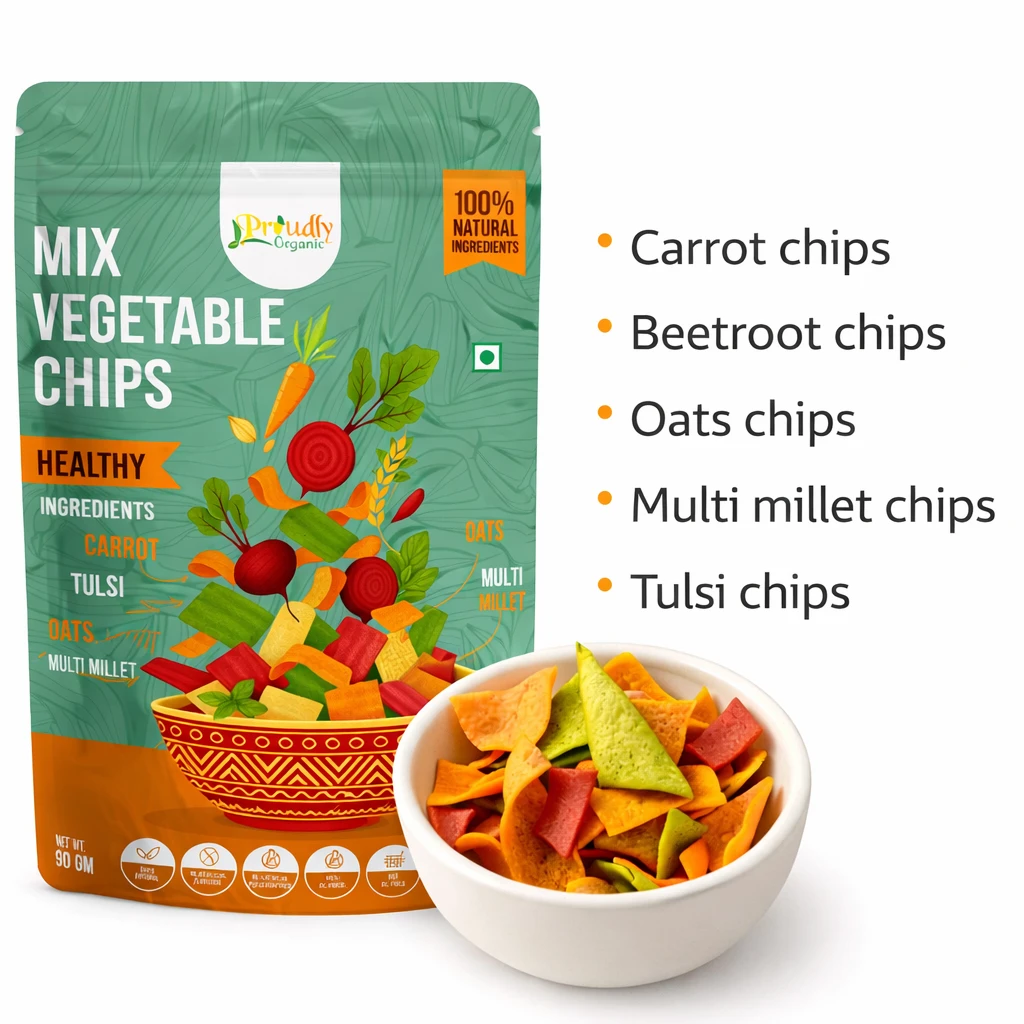 MIX VEGETABLE CHIPS: Carrot Chips, Beetroot Chips, Oats Chips, Multi-millet Chips, Tulsi Chips