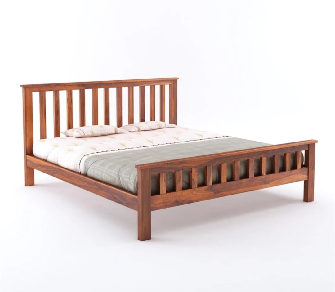 Features a slatted headboard and footboard, giving it a simple yet elegant look