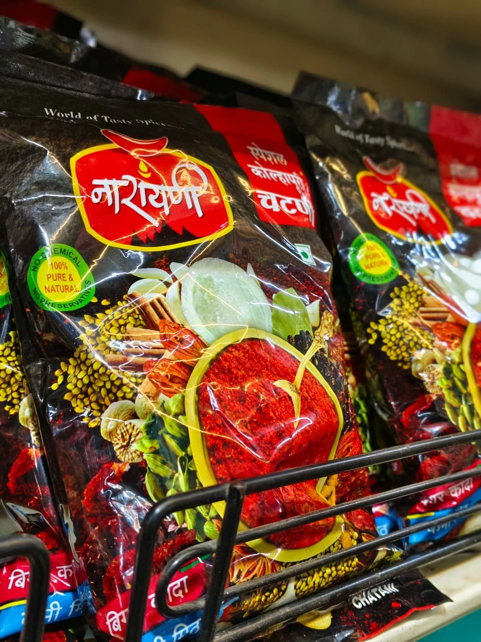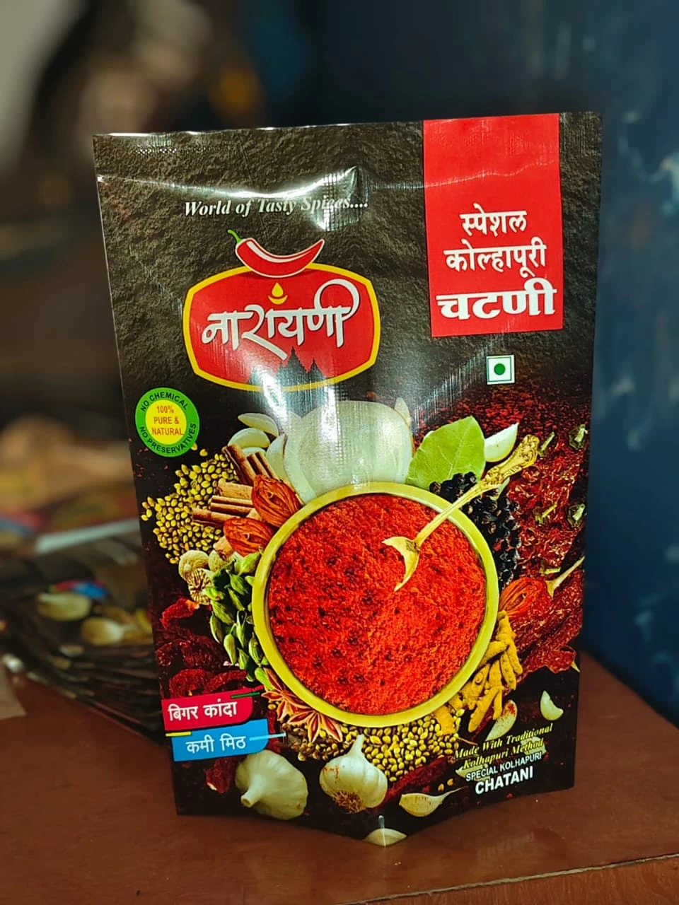 Narayan Special Kolhapuri Chutney is an authentic Maharashtrian dry chutney made using traditional Kolhapuri recipes. Prepared from carefully selected spices, red chillies, garlic, and aromatic ingredients, this chutney delivers a bold, spicy, and flavorful taste that enhances any meal.