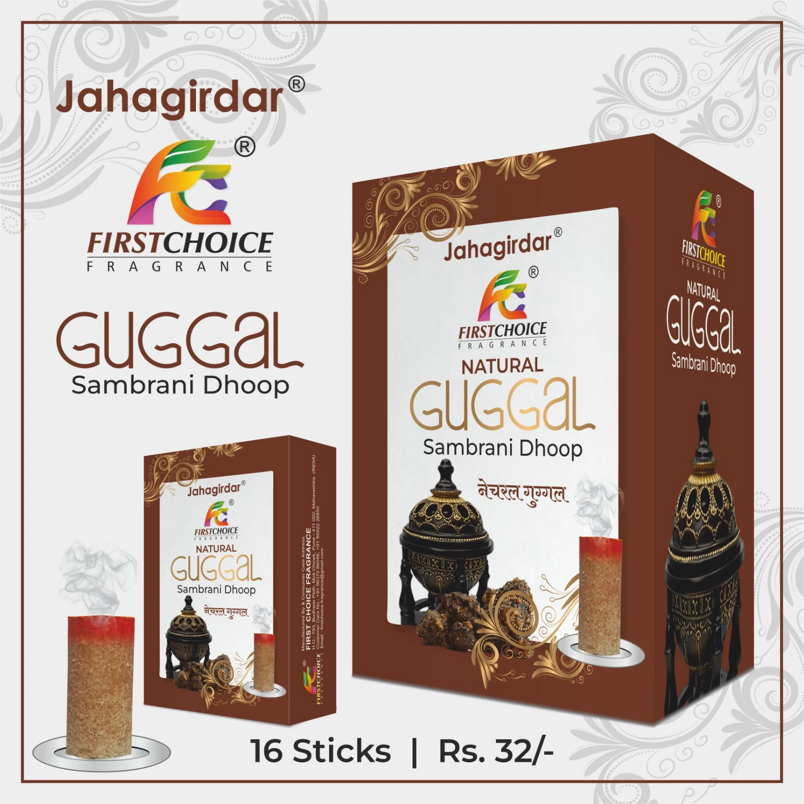 Bring home the purity of tradition with Natural Guggal Sambrani Dhoop by Jahagirdar – First Choice Fragrance. Infused with the rich and earthy aroma of natural guggal, this dhoop creates a spiritually uplifting and calming atmosphere in your home.