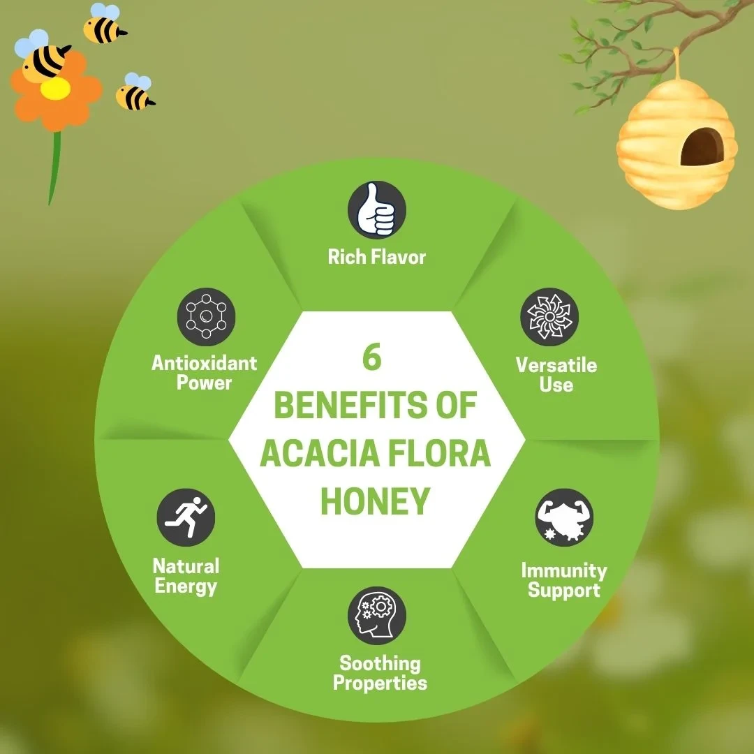 • Harvested from the nectar of Acacia flowers.