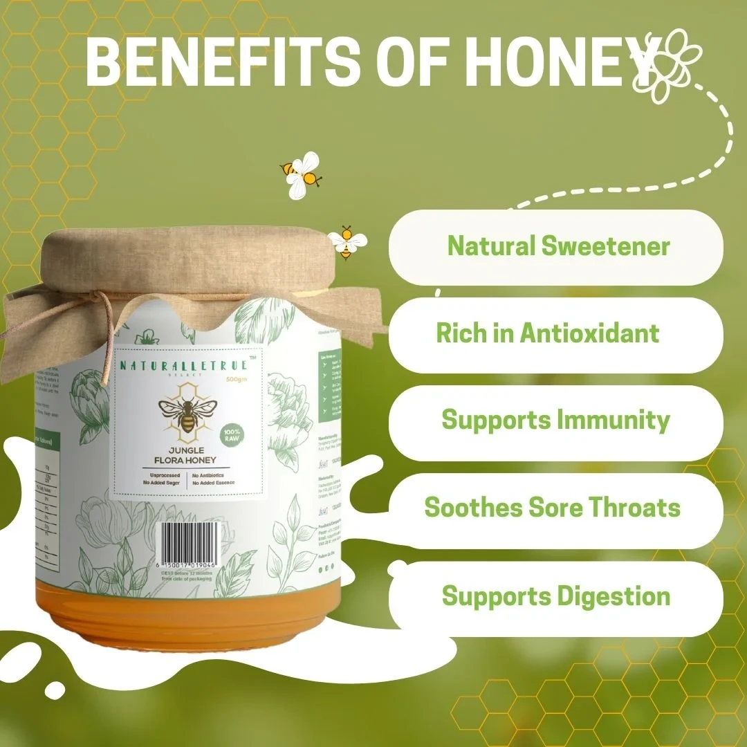 NaturalleTrue Jungle Flora Honey 100% Pure Raw and Unprocessed Honey