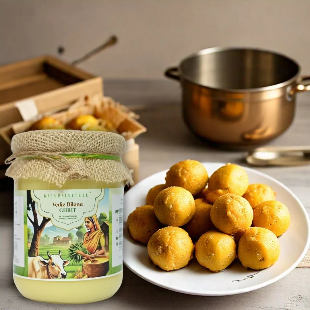 NaturalleTrue’s Sahiwal Cow Ghee embodies a premium quality product, crafted using the traditional Vedic process from the milk of grass-fed Sahiwal cows. This ghee stands out for its rich, grainy texture and natural aroma, making it ideal for cooking, baking, and Ayurvedic practices. With each batch rigorously lab-tested for purity and quality, consumers can trust that they are receiving a pesticide- and chemical-free product. Packaged elegantly in a glass jar with a wooden spoon, it caters to health-conscious individuals who appreciate authenticity and wellness in every spoonful.