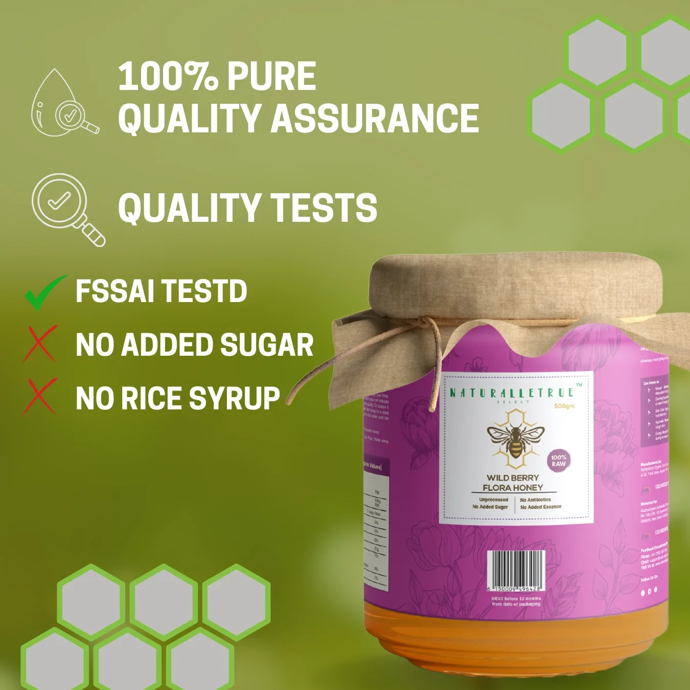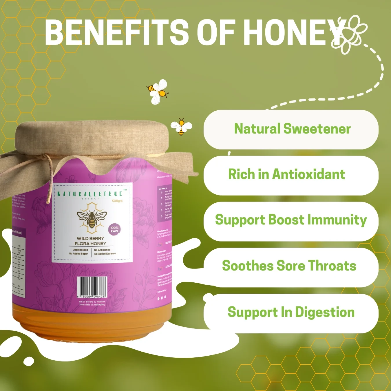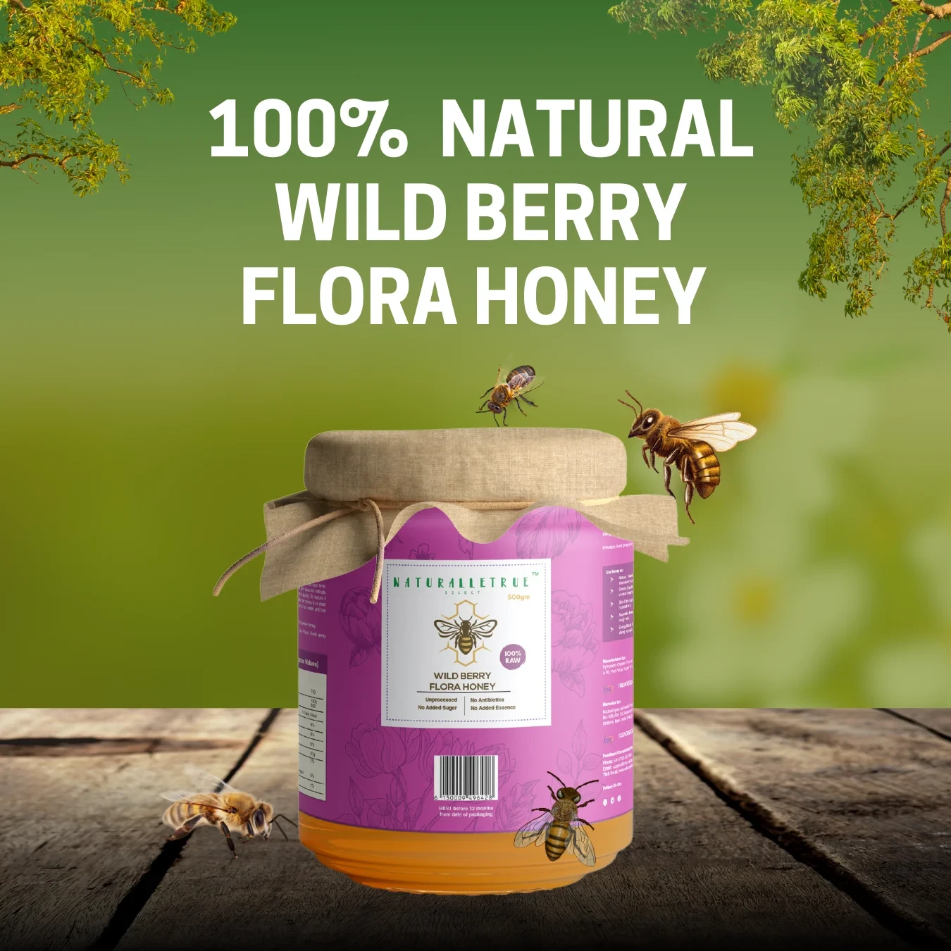 NaturalleTrue Wild Berry Flora Honey 100% Pure Raw and Unprocessed Honey