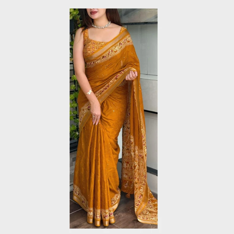 Made from soft and easy-to-drape fabric, this saree ensures all-day comfort with a graceful fall. Its unique Neno Banana design adds character and charm, making it suitable for casual outings, festive gatherings, office wear, or small celebrations.