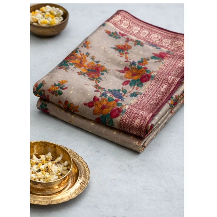 The beautiful prints enhance its elegance, making it perfect for festive occasions, family functions, office wear, and casual gatherings. Lightweight yet luxurious in appearance, this saree blends traditional charm with modern style.