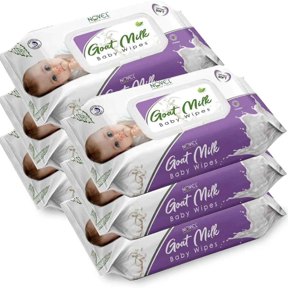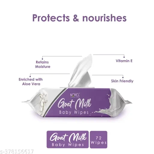 These Novel Goat Milk Baby Wipes are ultra-soft and gentle wet wipes crafted especially for delicate baby skin. Infused with Goat Milk, Aloe Vera, and Vitamin E, they cleanse and moisturize without harsh chemicals. The wipes are hypoallergenic, paraben-free, alcohol-free, and fragrance-free β making them suitable for sensitive skin and everyday use. Ideal for diaper changes, wiping hands and face, or general hygiene for infants and toddlers. Made in India.