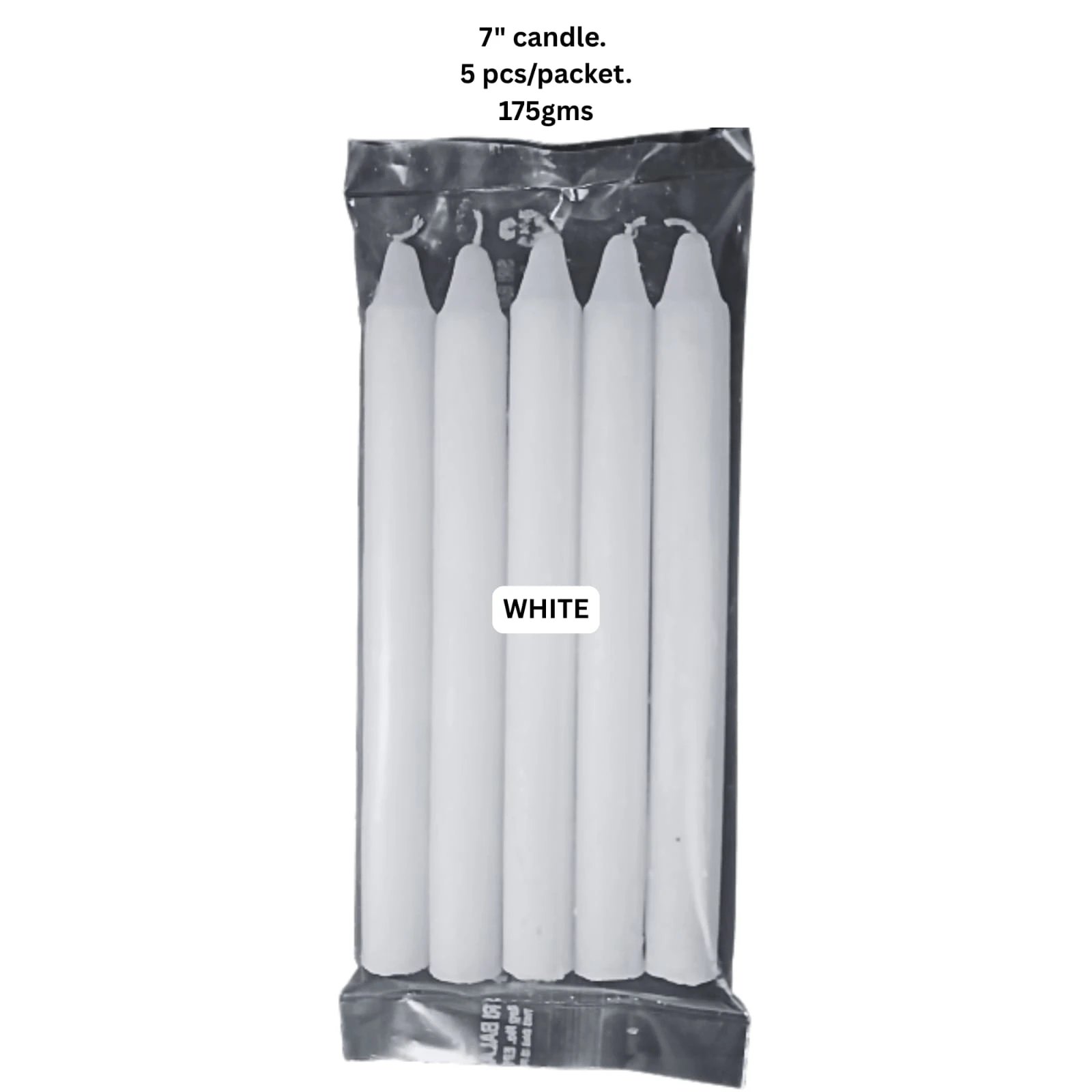 The elegant white finish makes them ideal for prayer rituals, spiritual ceremonies, home décor, restaurants, events, and emergency lighting. Their 7-inch length provides an extended burn time of approximately 3–4 hours per candle, offering dependable light when you need it most.