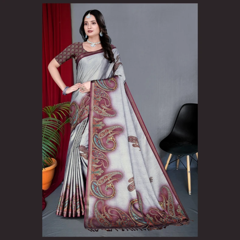 Elevate your ethnic wardrobe with this beautiful patterned crepe silk saree designed for modern elegance. Crafted from smooth and lightweight crepe silk fabric, this saree offers a soft texture and graceful drape that enhances your overall look. The stylish printed pattern adds a contemporary touch, making it perfect for festive occasions, parties, family gatherings, and traditional events.